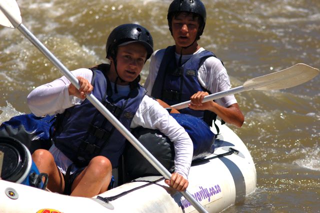 At the bottom, you had to paddle like crazy to reach the bank, because the current was so strong. Stefan and Riki were happy to be done.