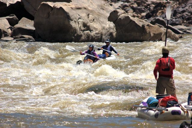 In this photo, Tubes is holding his paddle straight up as Wikus and Heidi go down, signifying that everything is going fine (so far).