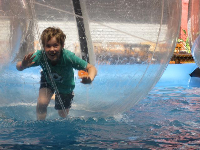 On this ride, the kids were zipped into a pressurized, see-through sphere and allowed to float around a small pool.