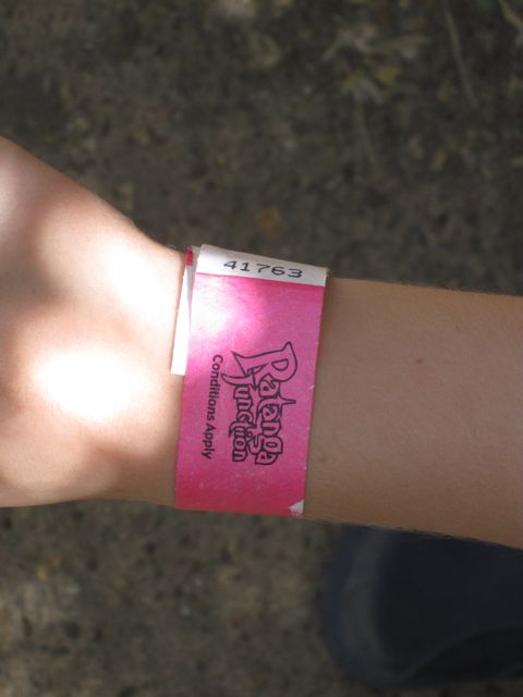 This is Mark's wristband. I took this photo as we were waiting for The Cobra, a hanging coaster that Mark and I rode twice while Tracy, Kamva, and Catherine watched a show. Empty pockets are essential for this ride, so I couldn't take any photos on The Cobra.