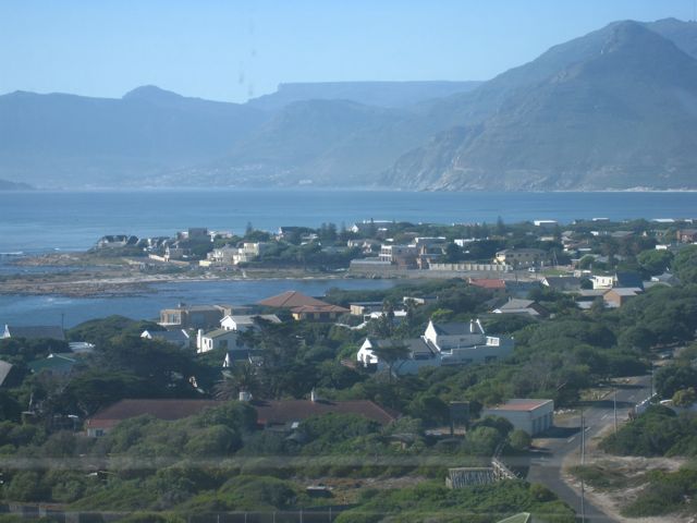 This is the view from the top of Slangkop Lighthouse. Table Mountain is visible in the distance.