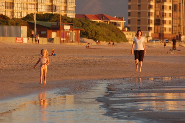 Catherine enjoyed playing at the shore with Tracy.