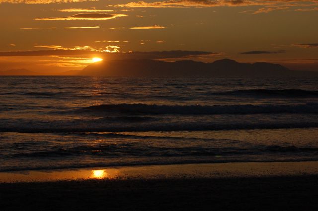 I like the way one of the foreground waves copies the shape of Muizenberg in the background.