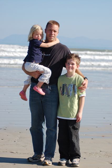 A kind passerby offered to take our photo. You can see that Catherine is not entirely herself yet. She was a bit spooked by a dead fish we saw on the way to the shore. That and her cold made her clingy for a half hour.