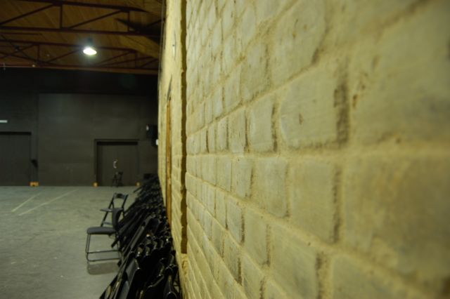 These clay bricks are made from local materials. This wall is in the community centre at the Lynedoch EcoVillage.