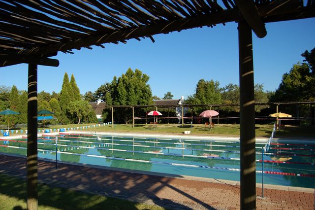 Parents sit in the shaded gallery to watch the races.