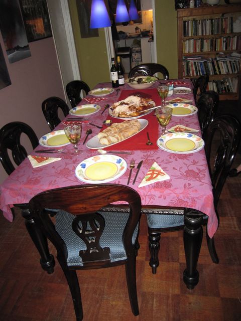 Then, in the evening, we went over to Amanda and Louis' house for a braai. We had a great time, laughing late into the night. I snapped this photo of the table. Louis made two whole chickens in his new Weber grill. The results were lekker.