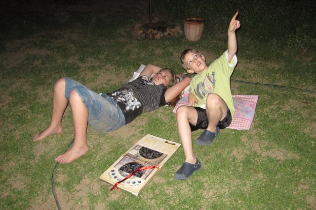 Simone and Mark looked up at the stars using Simone's astronomy book as a guide.