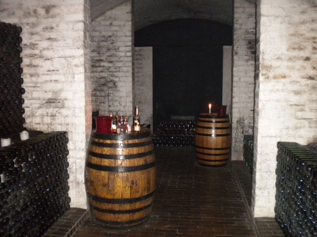 We had 5 opportunities for tasting wines. We would stand around this barrel and our guide would pour a small amount in our glass. We would take a sip, and then pour the rest in the red container you see pictured on the barrel. Then we would eat a cracker before our next taste.